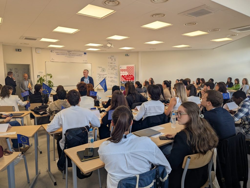 En parallèle du forum, 69 étudiants de Licence 3 Droit ont pris part à une simulation du Parlement européen, organisée par le Service des relations internationales de l’Université de Corse, sous l’égide de Mme le Doyen Perrine Dumas.